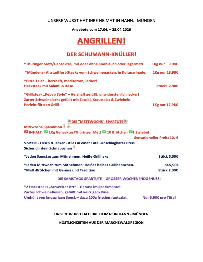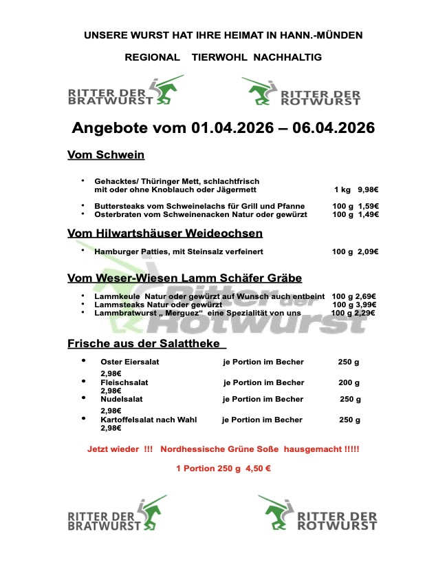 Wir produzieren in zwei Betrieben, in Hann. Münden und in Gottsbüren bei Kassel. Unser handwerkliches Können und überlieferte Rezepte basieren auf den über Generationen gewachsenen Erfahrungen. So erhalten wir mit unseren alten und neuen Wurstspezialitäten viele begehrte internationale Anerkennungen und Auszeichnungen. Gourmets aus der ganzen Welt zählen wir zu den Kunden unserer regionalen Produkte.