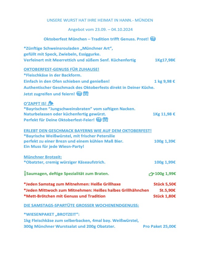 Unsere Wurst hat ihre Heimat in Hann. Münden. Die Feinkostfleischerei befindet sich im