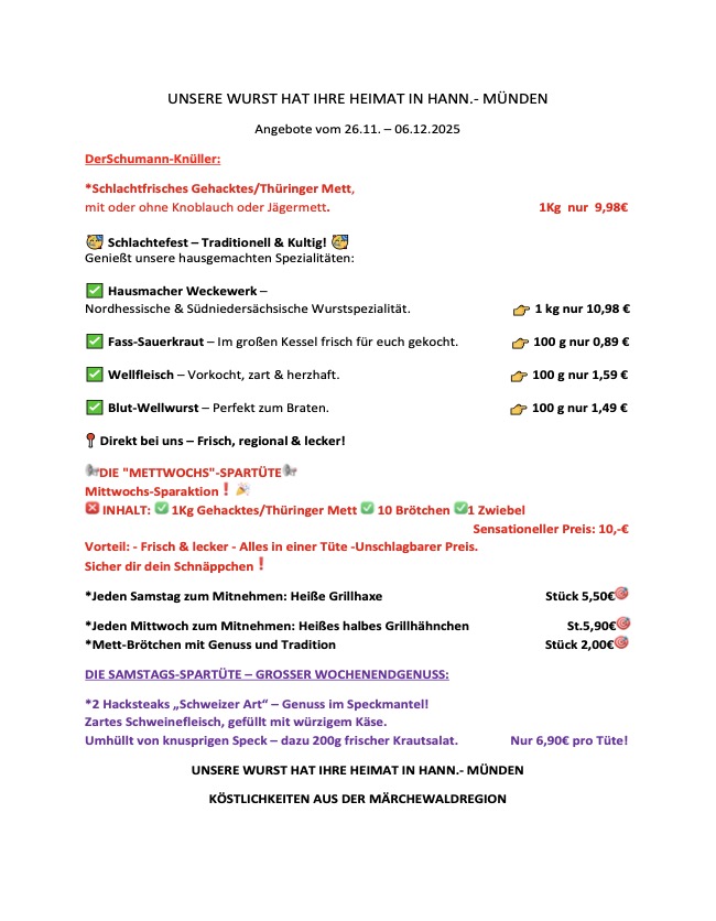 Wir produzieren in zwei Betrieben, in Hann. Münden und in Gottsbüren bei Kassel. Unser handwerkliches Können und überlieferte Rezepte basieren auf den über Generationen gewachsenen Erfahrungen. So erhalten wir mit unseren alten und neuen Wurstspezialitäten viele begehrte internationale Anerkennungen und Auszeichnungen. Gourmets aus der ganzen Welt zählen wir zu den Kunden unserer regionalen Produkte.