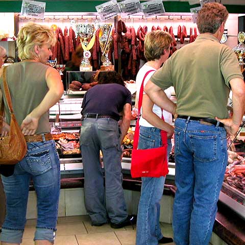 Wir bieten Ihnen ein reichhaltiges Frischesortiment mit traditionellen Fleisch- und Wurstwaren und vielen Delikatessen aus eigener Herstellung, Convenience-Artikeln, Salaten, Antipasti und internationalem Käseangebot. Das breite Angebot an Konserven, Nudeln, Wein und anderen Artikeln rundet den Genuss an unseren Produkten ab und ergänzt das Thekensortiment.